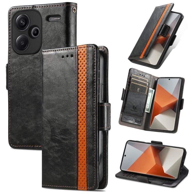 Για Xiaomi Redmi Note 13 Pro + CaseNeo Splicing Διπλή μαγνητική πόρπη δερμάτινη θήκη τηλεφώνου (μαύρο)