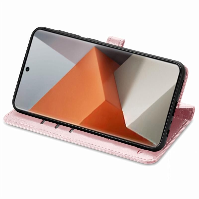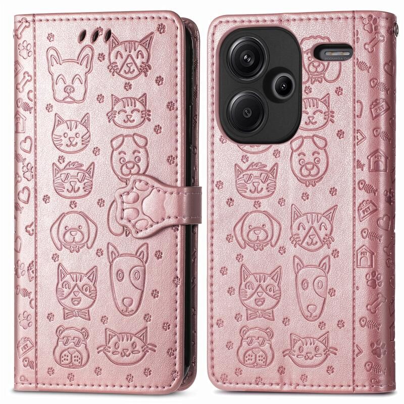 Θήκη τηλεφώνου από δέρμα με ανάγλυφο σχέδιο γάτας και σκύλου για Xiaomi Redmi Note 13 Pro+ (Χρυσορόδινο)