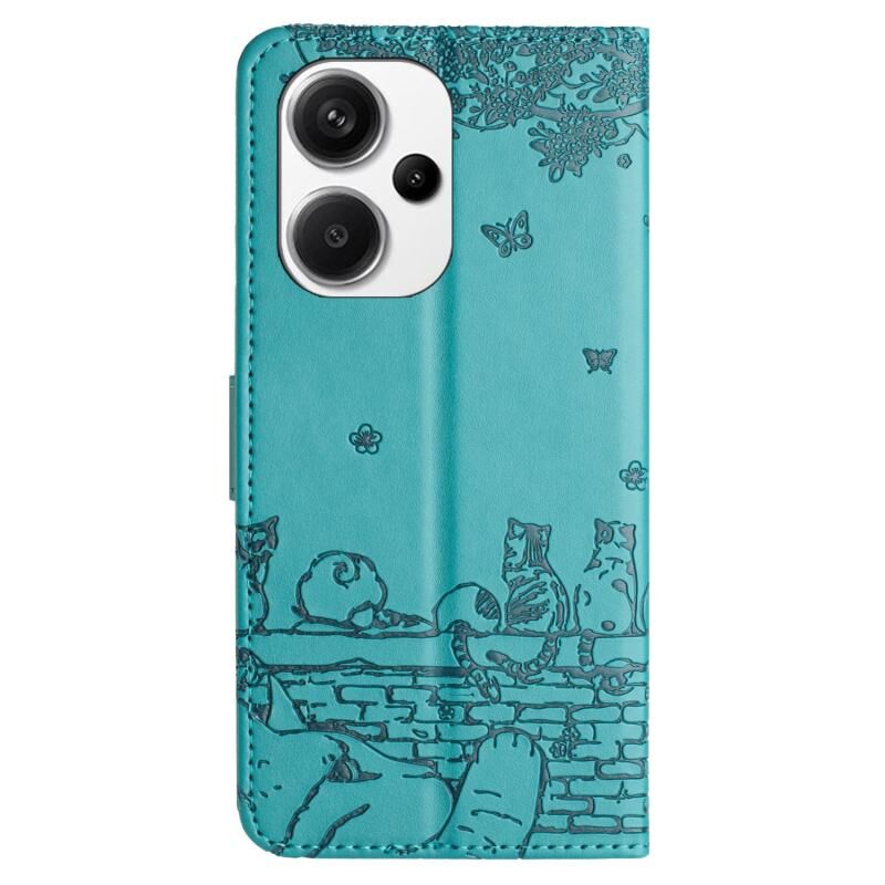 Θήκη τηλεφώνου δερμάτινη με ανάγλυφο σχέδιο γάτας για Xiaomi Bluemi Note 13 Pro+ με κορδόνι (Μπλε)