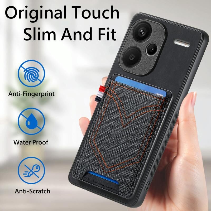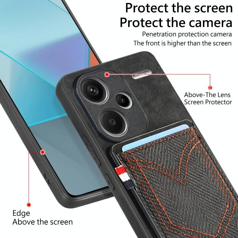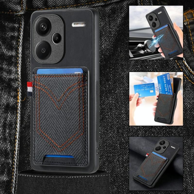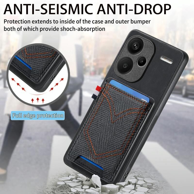 Για Xiaomi Redmi Σημείωση 13 Pro + Denim Υφή δέρμα δέρμα τηλέφωνο υπόθεση με υποδοχή κάρτας (μαύρο)