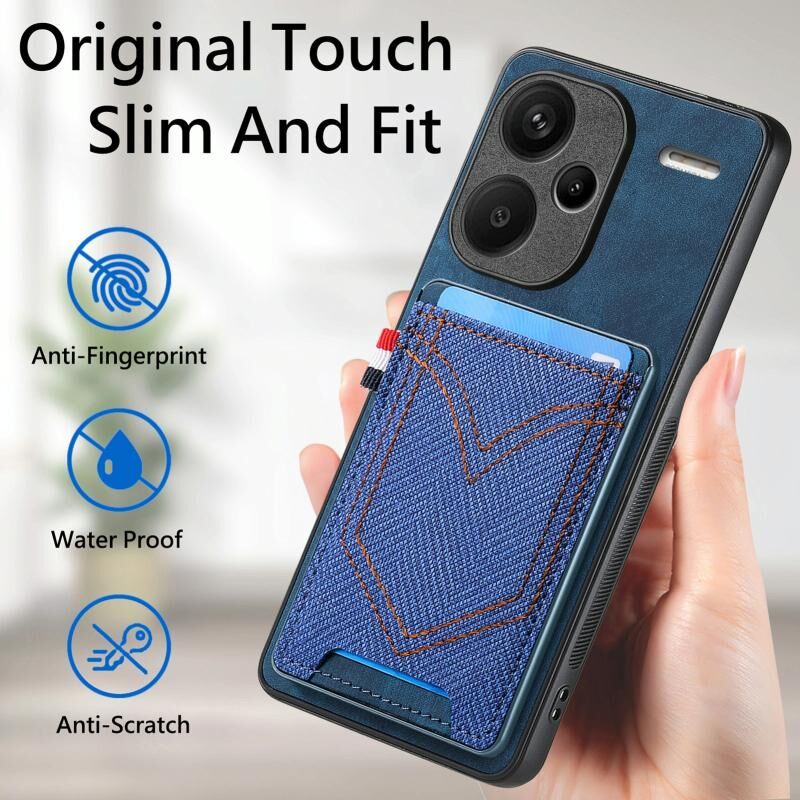 Για Xiaomi Redmi Σημείωση 13 Pro + Denim Υφή δέρμα δέρμα τηλέφωνο υπόθεση με υποδοχή κάρτας (μπλε)
