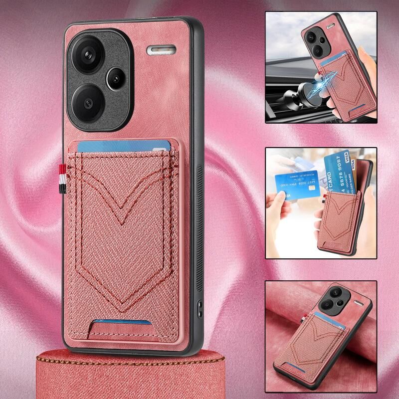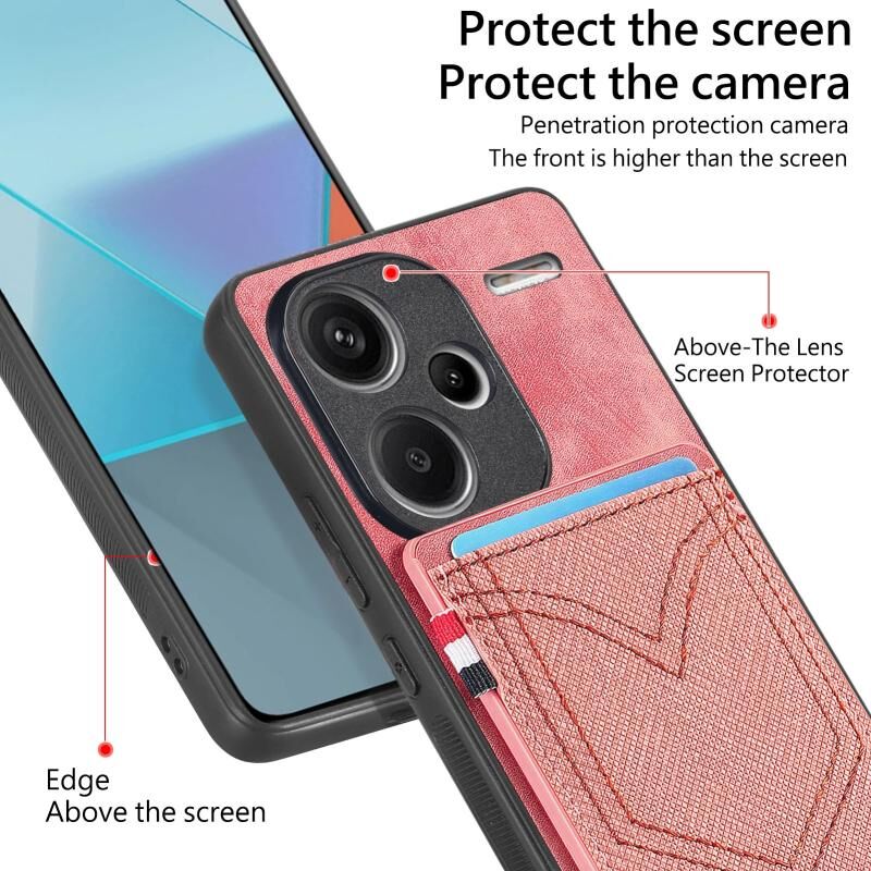 Για Xiaomi Redmi Σημείωση 13 Pro + Denim Υφή δέρμα δέρμα τηλέφωνο υπόθεση με υποδοχή κάρτας (ροζ)