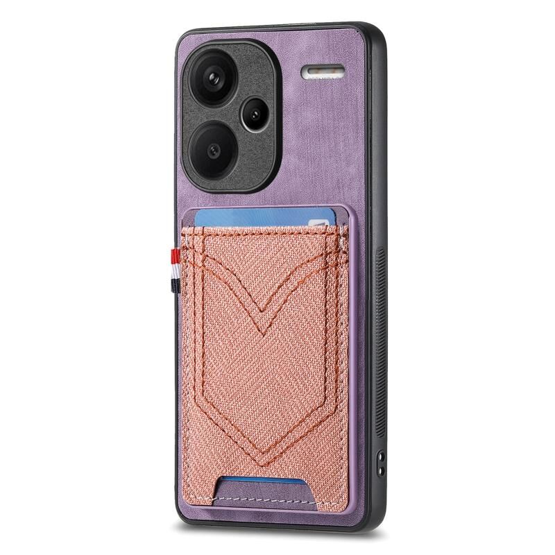 Για Xiaomi Redmi Σημείωση 13 Pro + Denim Υφή δέρμα δέρμα τηλέφωνο υπόθεση με υποδοχή κάρτας (Μωβ)