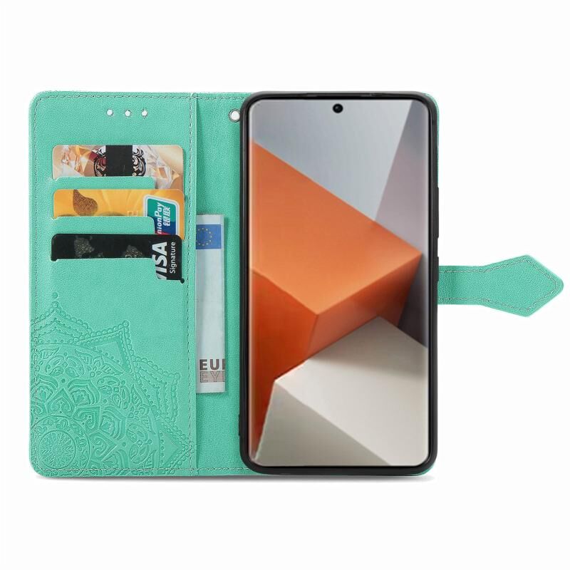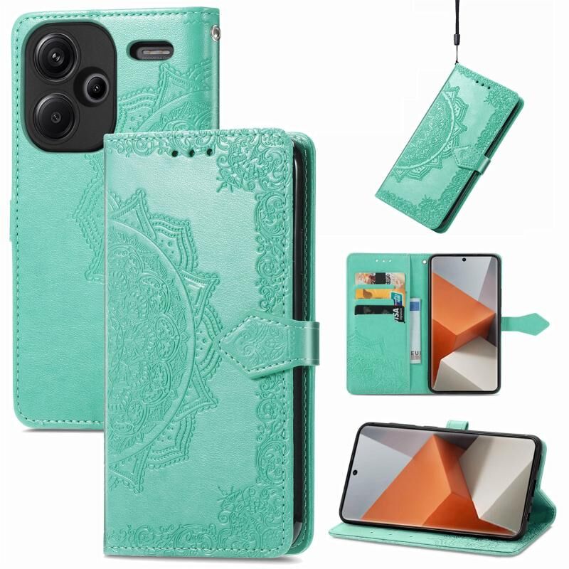 Για Xiaomi Redmi Note 13 Pro + Mandala λουλούδι ανάγλυφο δέρμα τηλέφωνο υπόθεση (πράσινο)