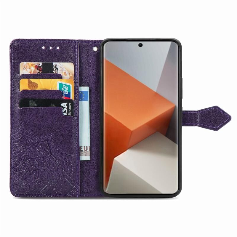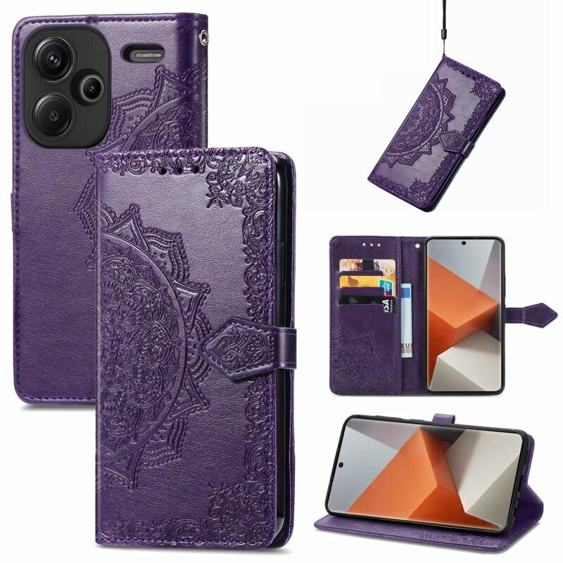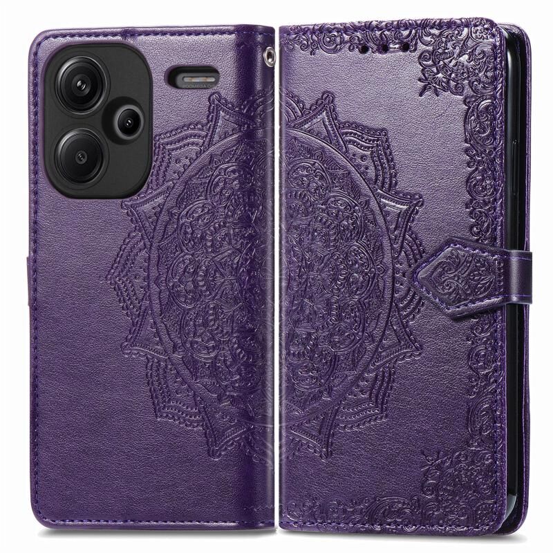 Για Xiaomi Redmi Σημείωση 13 Pro + Mandala λουλούδι ανάγλυφο δέρμα τηλέφωνο υπόθεση (μωβ)