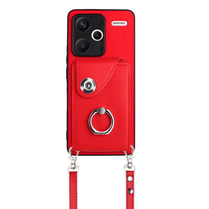 Για Xiaomi Redmi Note 13 Pro + Οργανική κάρτα τσάντα δαχτυλίδι κάτοχος τηλέφωνο υπόθεση με μακρύ κορδόνι (Κόκκινο)