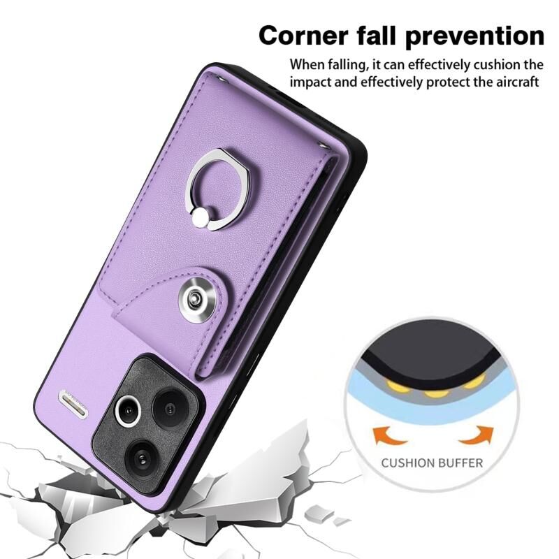 Για Xiaomi Redmi Σημείωση 13 Pro + Οργανική κάρτα τσάντα δαχτυλίδι κάτοχος PU τηλέφωνο υπόθεση (μωβ)