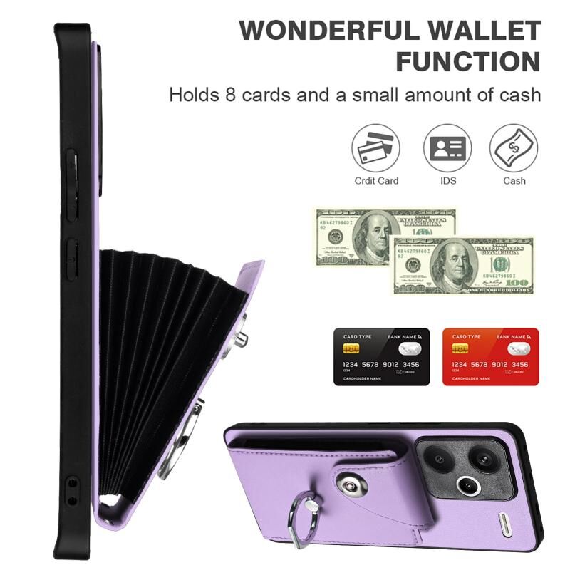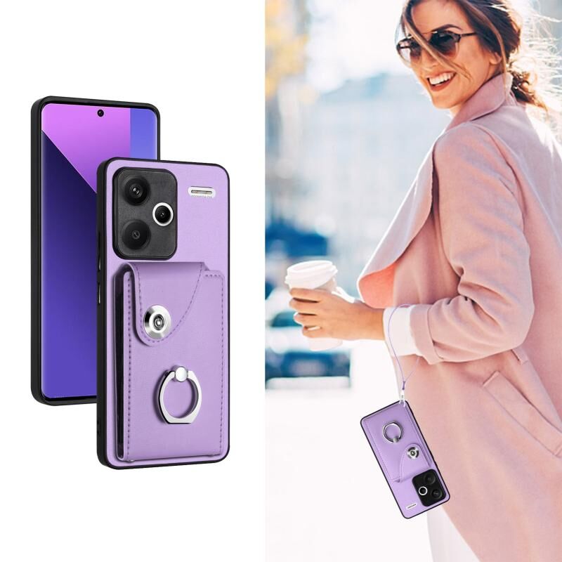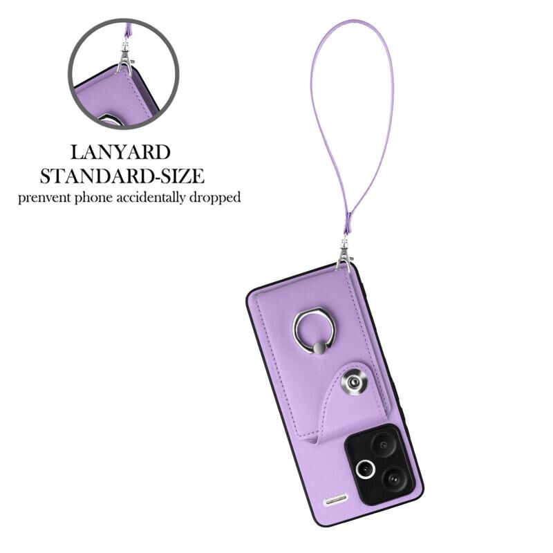 Για Xiaomi Redmi Note 13 Pro + Οργανική κάρτα τσάντα δαχτυλίδι κάτοχος PU υπόθεση τηλεφώνου με κορδόνι (Μωβ)