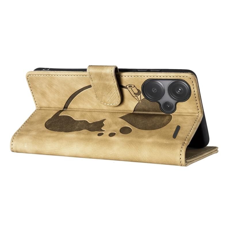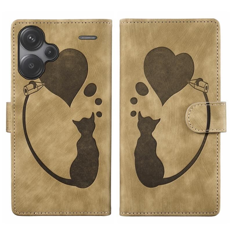 Θήκη τηλεφώνου από δέρμα με ανάγλυφο σχέδιο καρδιάς και γάτας για Xiaomi Redmi Note 13 Pro+ (Βερίκοκο)