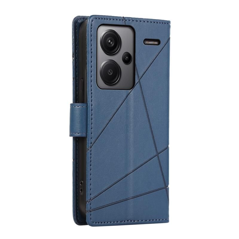 For Xiaomi Redmi Note 13 Pro+ PU Genuine Leather Texture Embossed Line Phone Case(Blue)