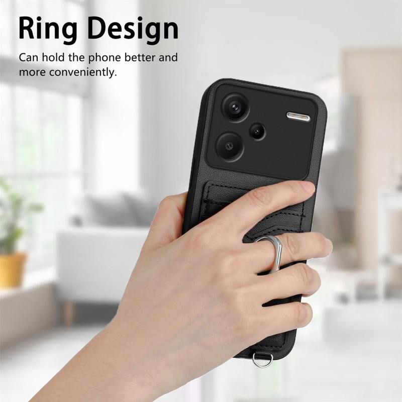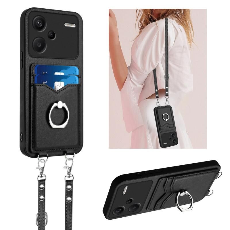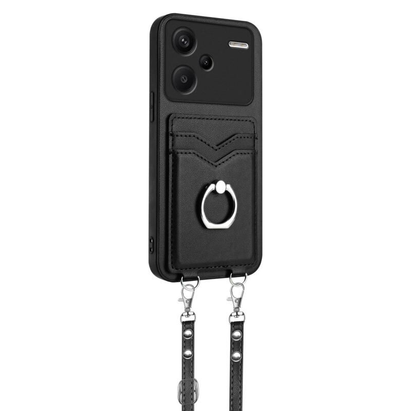 Για Xiaomi Redmi Note 13 Pro + R20 Crossbody σχοινί δαχτυλίδι κάρτας κάτοχος υπόθεση τηλεφώνου (Μαύρο)