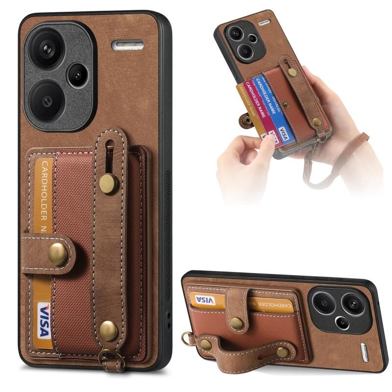 Για Xiaomi Redmi Note 13 Pro + Ρετρό σταυρό Wristband πορτοφόλι δέρμα πίσω υπόθεση τηλεφώνου (καφέ)