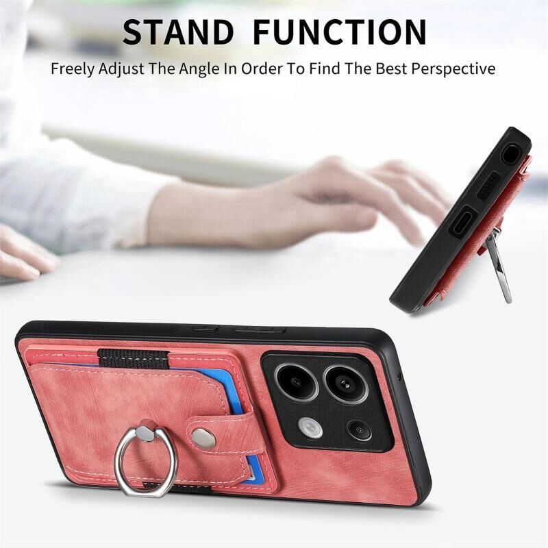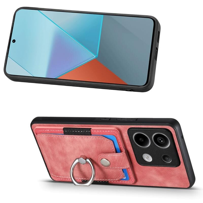 Για Xiaomi Redmi Σημείωση 13 Pro Ρετρό δέρμα αίσθηση δαχτυλίδι κάρτα πορτοφόλι τηλέφωνο υπόθεση (ροζ)