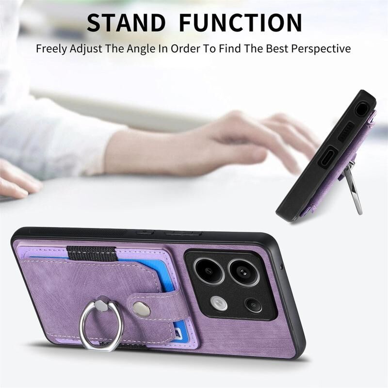 Για Xiaomi Redmi Σημείωση 13 Pro Ρετρό δέρμα αίσθηση δαχτυλίδι κάρτα πορτοφόλι υπόθεση τηλεφώνου (Μωβ)