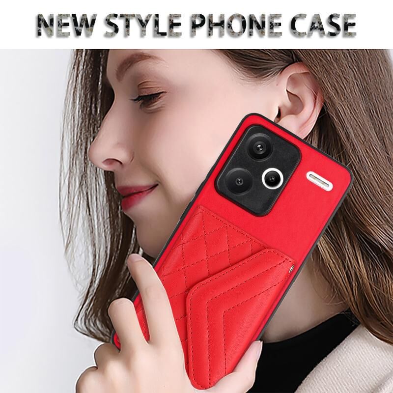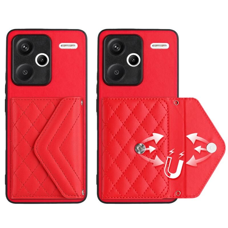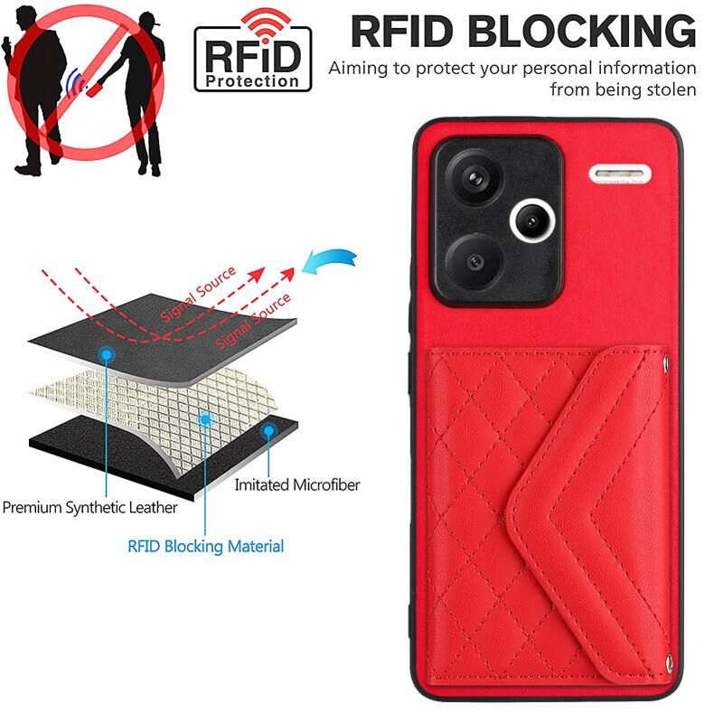 Για Xiaomi Redmi Σημείωση 13 Pro + Rhombic υφή κάρτα τσάντα RFID υπόθεση τηλεφώνου (κόκκινο)