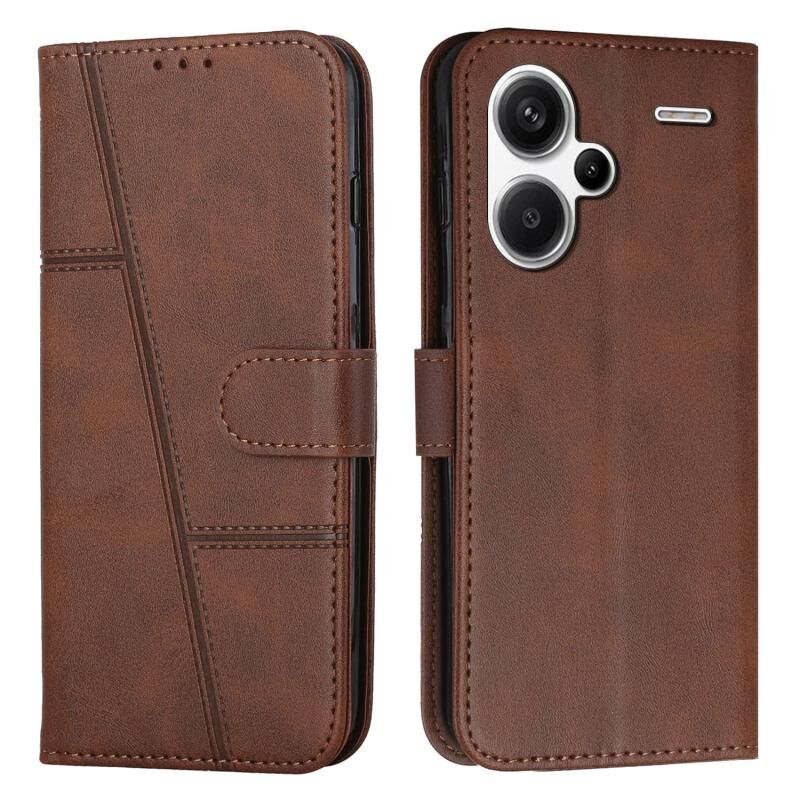 Για Xiaomi Redmi Σημείωση 13 pro + ραφή μοσχάρι υφή πόρπη δερμάτινη θήκη τηλεφώνου (καφέ)