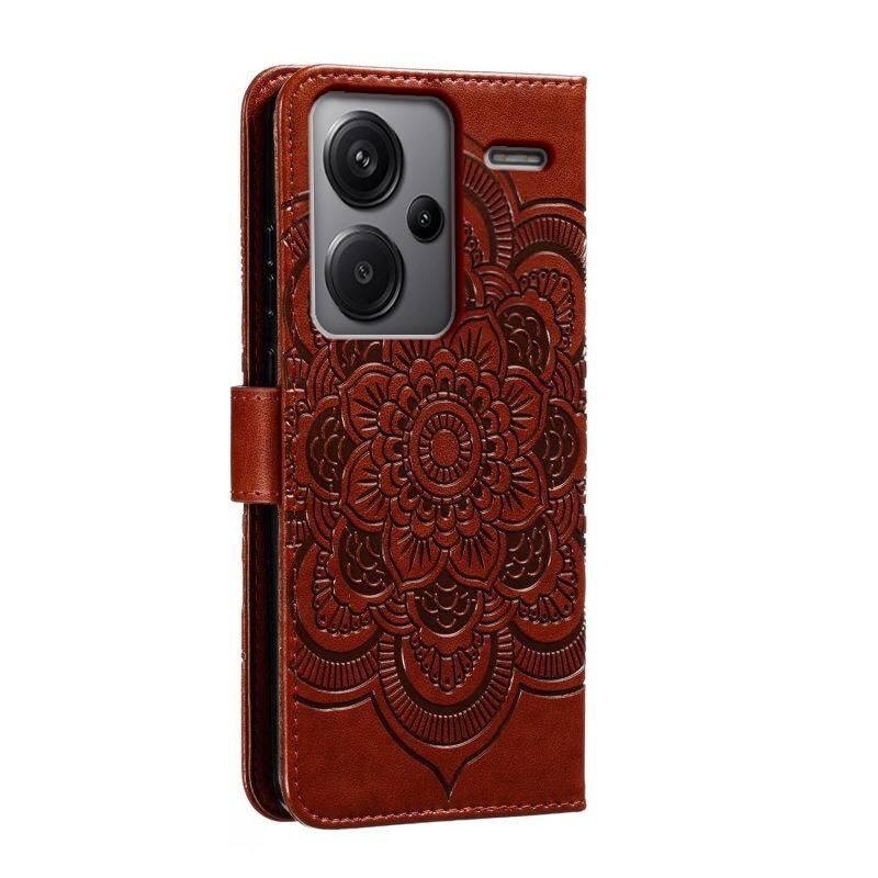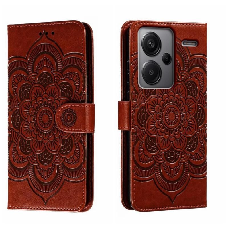 Για Xiaomi Redmi Note 13 Pro + Sun Mandala ανάγλυφο μοτίβο τηλέφωνο δερμάτινη θήκη (καφέ)