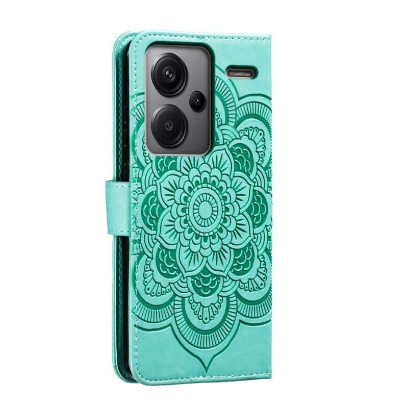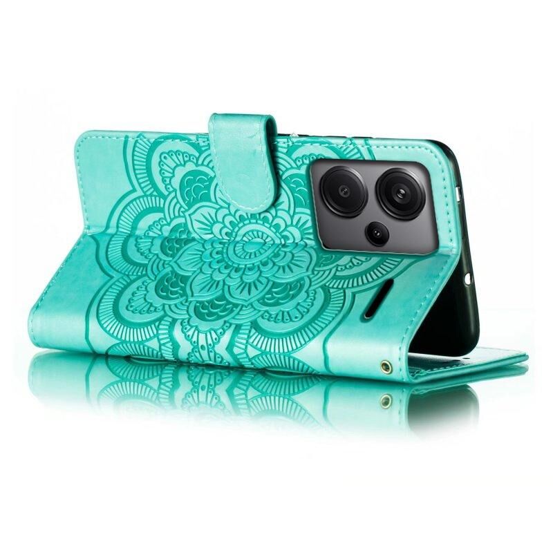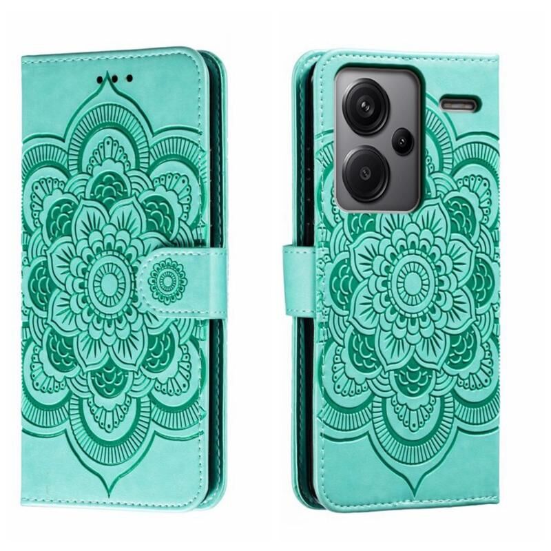 Για Xiaomi Redmi Note 13 Pro + Sun Mandala ανάγλυφο μοτίβο τηλέφωνο δερμάτινη θήκη (πράσινο)