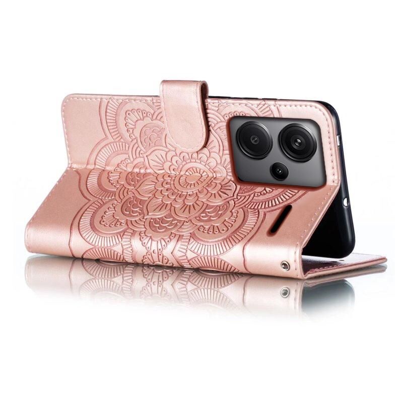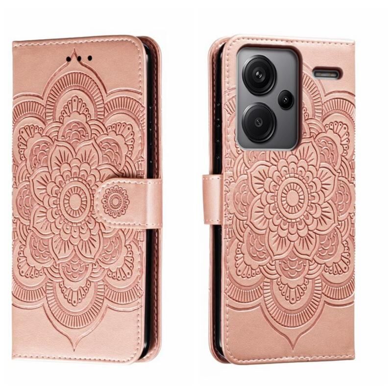 Για Xiaomi Redmi Note 13 Pro + Sun Mandala ανάγλυφο μοτίβο τηλέφωνο δερμάτινη θήκη (Rose Gold)