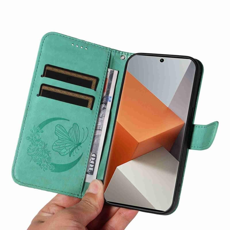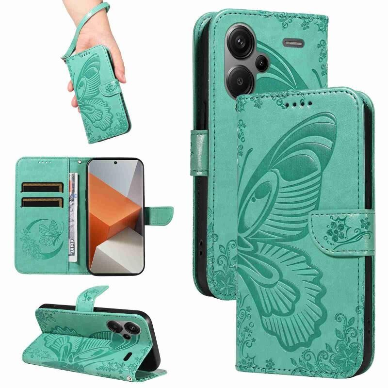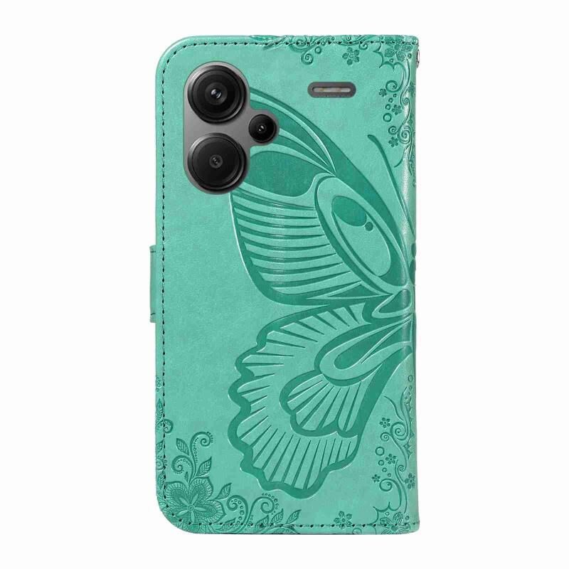 Θήκη τηλεφώνου από δέρμα με ανάγλυφο σχέδιο πεταλούδας Swallowtail για Xiaomi Redmi Note 13 Pro+ (Μπλε)