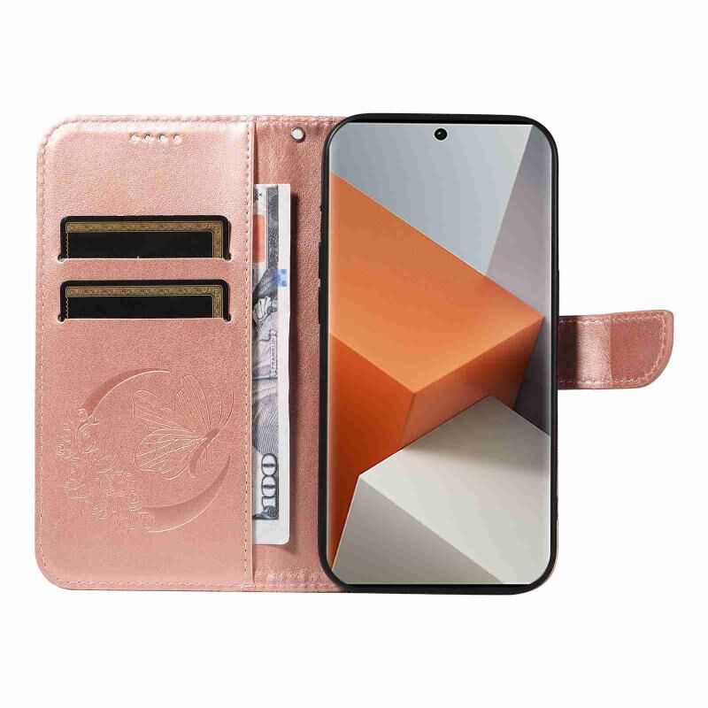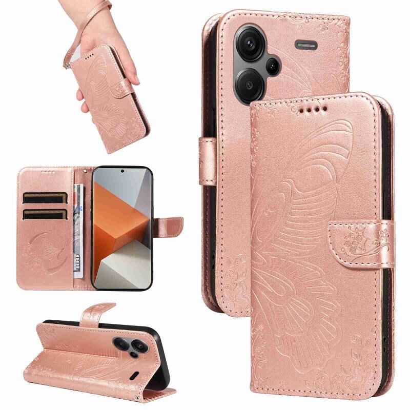Θήκη τηλεφώνου από δέρμα με ανάγλυφο σχέδιο πεταλούδας Swallowtail για Xiaomi Redmi Note 13 Pro+ (Μπλε)