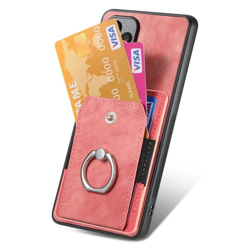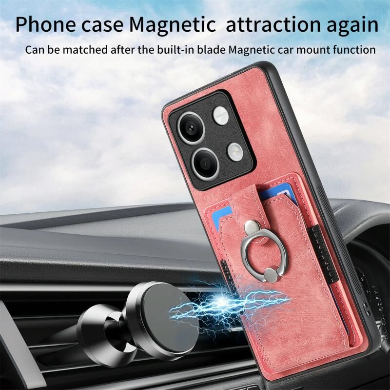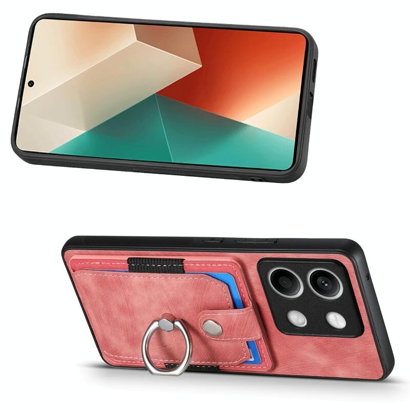 Για Xiaomi Redmi Σημείωση 13 Ρετρό δέρμα αίσθηση δαχτυλίδι κάρτα πορτοφόλι τηλέφωνο υπόθεση (ροζ)
