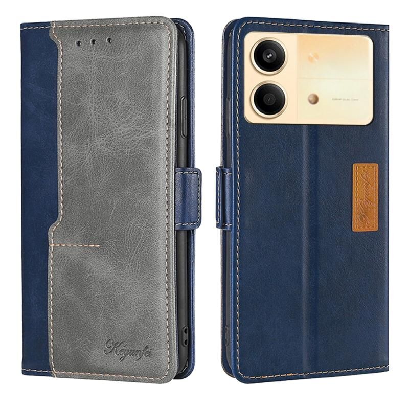 Για Xiaomi Redmi Σημείωση 13R Pro 5G αντίθεση χρώμα πλευρά πόρπη δερμάτινη θήκη τηλεφώνου υπόθεση (μπλε + γκρι)