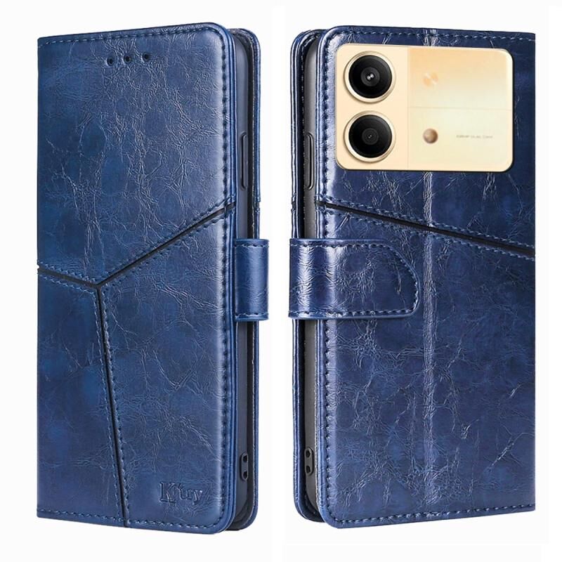 Για Xiaomi Redmi Note 13R Pro 5G γεωμετρική ραφή δερμάτινη θήκη τηλεφώνου (μπλε)