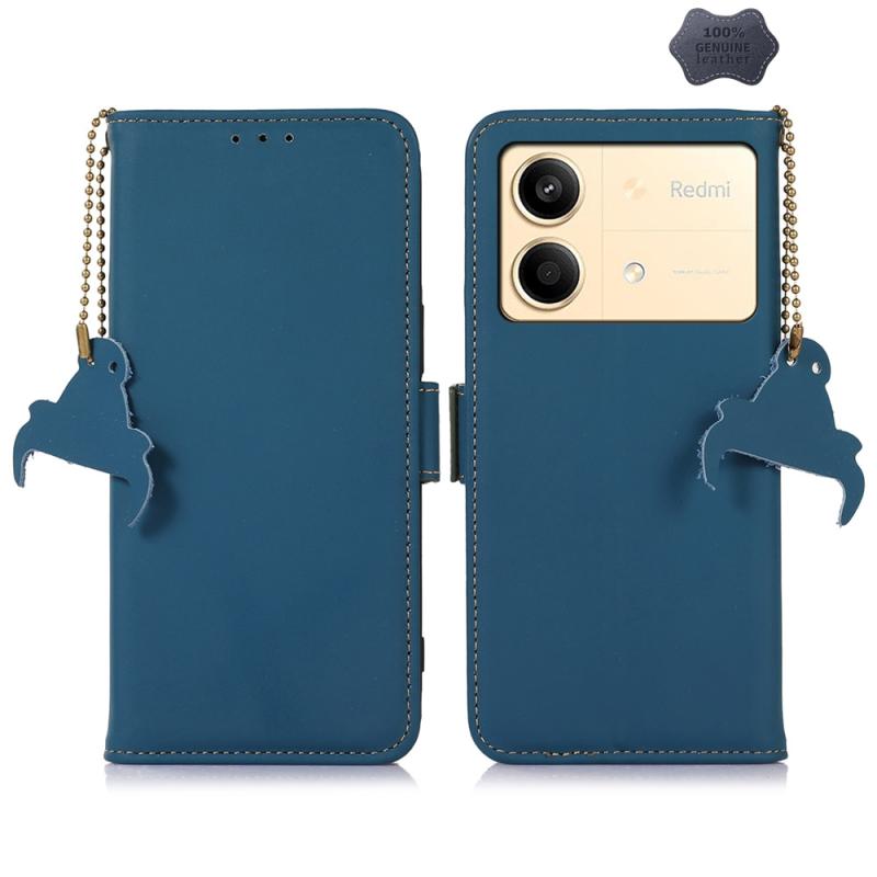 For Xiaomi Redmi Note 13R Pro Genuine Leather Magnetic RFID Leather Phone Case(Blue)