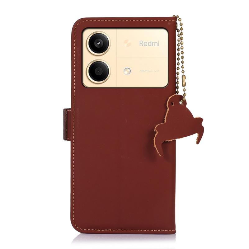 For Xiaomi Redmi Note 13R Pro Genuine Leather Magnetic RFID Leather Phone Case(Coffee)
