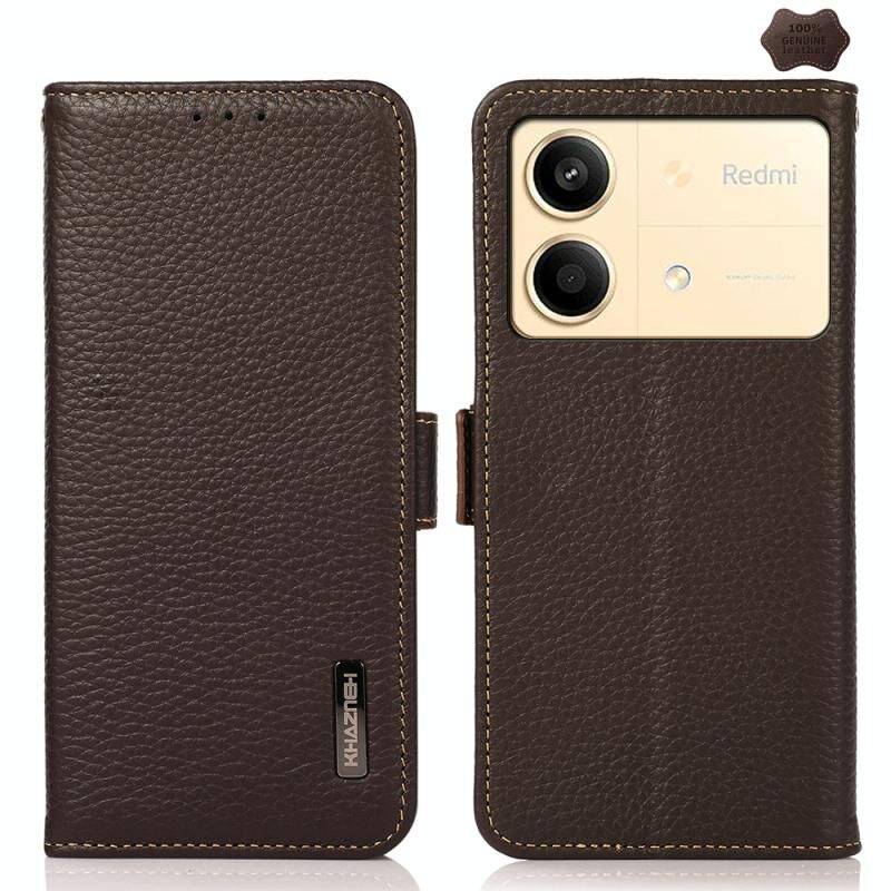 Για Xiaomi Redmi Note 13R Pro KHAZNEH Δερμάτινη Θήκη με Μαγνήτη RFID (Καφέ)