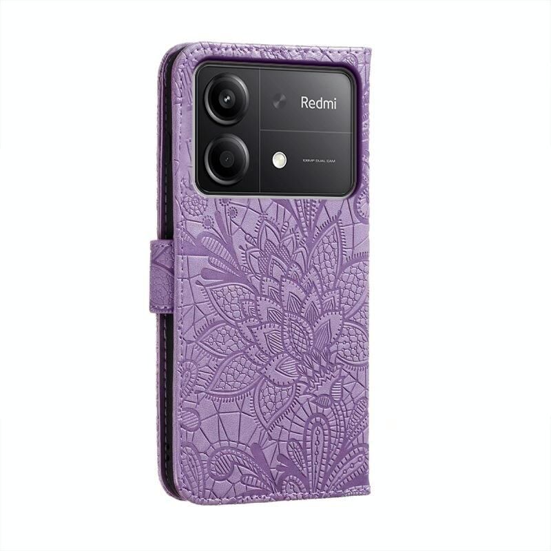 Για Xiaomi Redmi Note 13R Pro Lace Flower ανάγλυφο Flip υπόθεση τηλεφώνου δέρμα (μωβ)