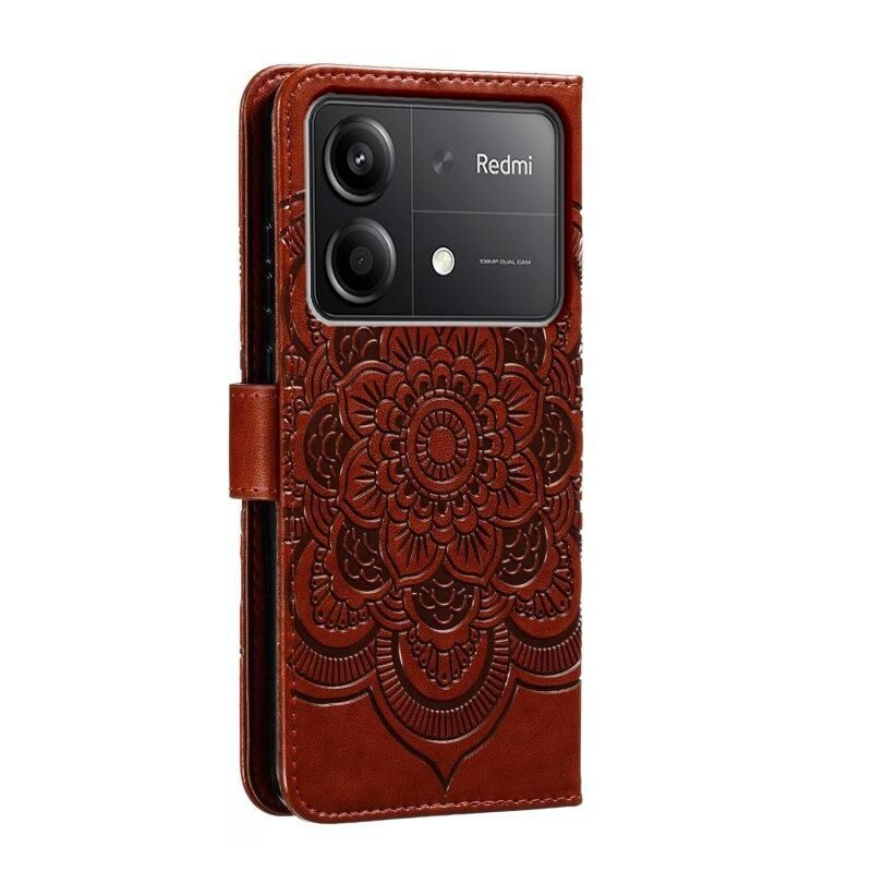 Για Xiaomi Redmi Σημείωση 13R Pro Sun Mandala ανάγλυφο μοτίβο τηλέφωνο δερμάτινη θήκη (Καφέ)