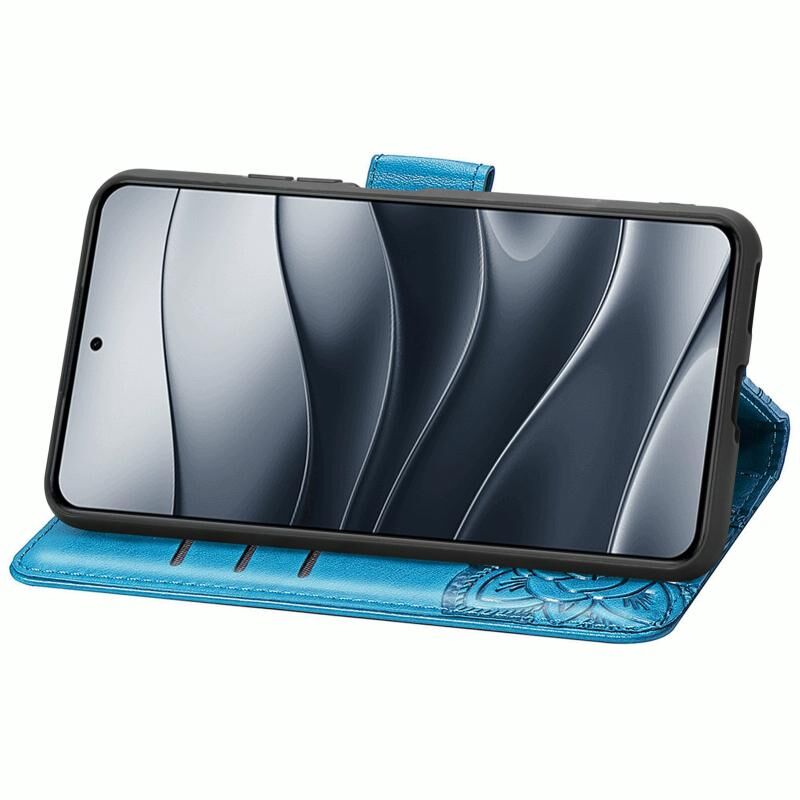 Θήκη τηλεφώνου δερμάτινη ανάγλυφη με σχέδιο πεταλούδας και λουλουδιών για Xiaomi Redmi Note 14 5G (Χρυσορόζ)
