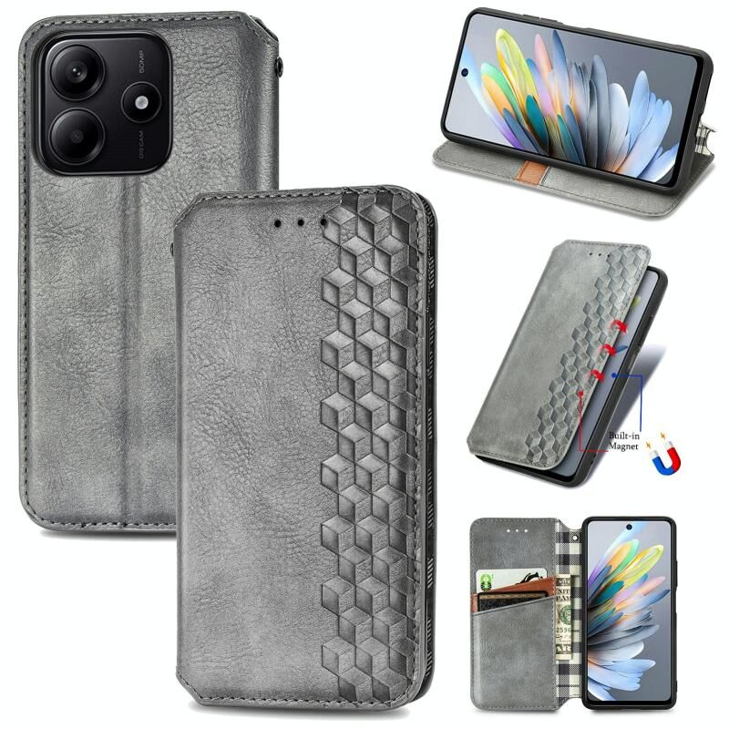 Για Xiaomi Redmi Note 14 5G Cubic Grid Pressed μαγνητική δερμάτινη θήκη τηλεφώνου (γκρι)