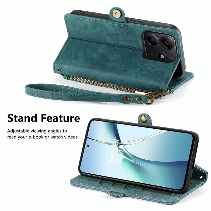 Για Xiaomi Redmi Σημείωση 14 5G γεωμετρική φερμουάρ πορτοφόλι πλευρά πόρπη δερμάτινη θήκη τηλεφώνου (πράσινο)