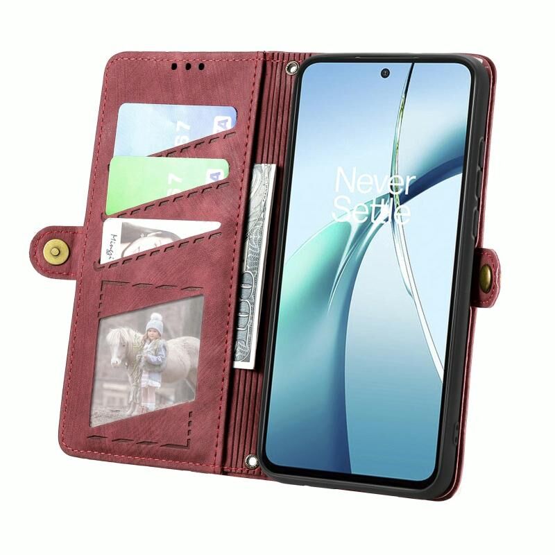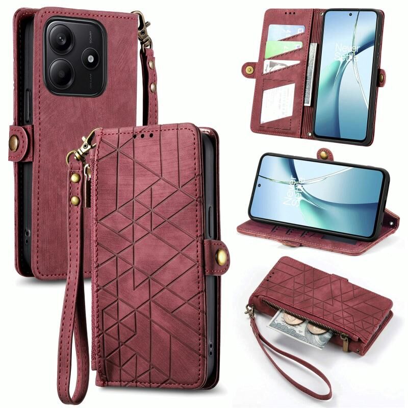 Για Xiaomi Redmi Σημείωση 14 5G γεωμετρική φερμουάρ πορτοφόλι πλευρά πόρπη δερμάτινη θήκη τηλεφώνου (κόκκινο)