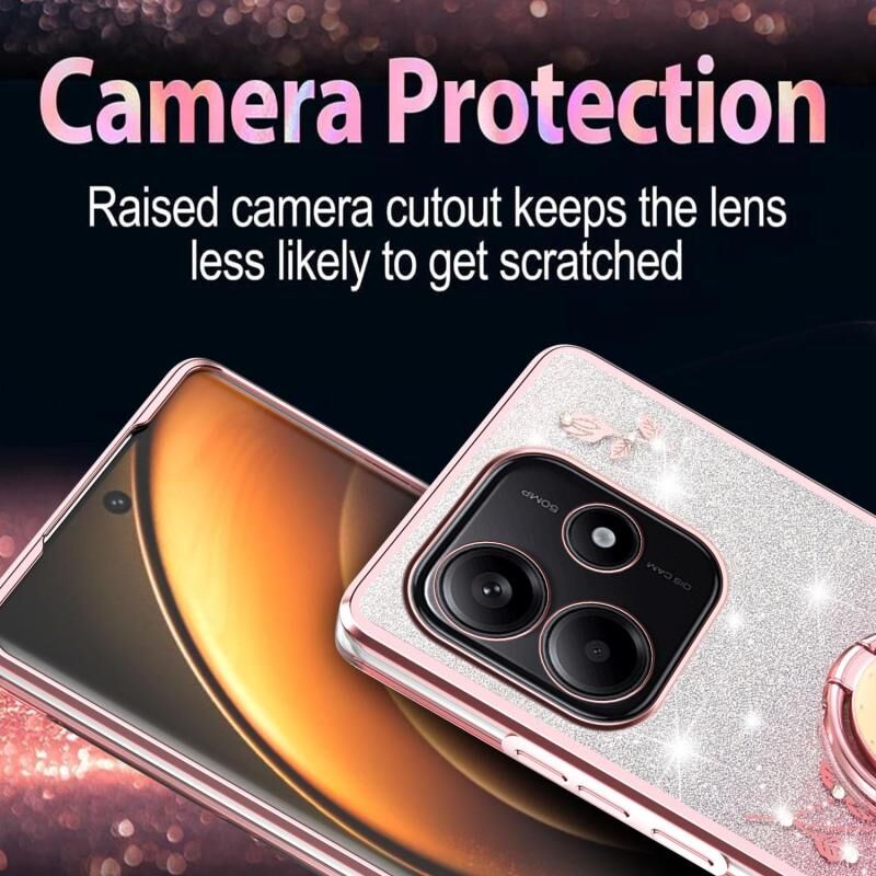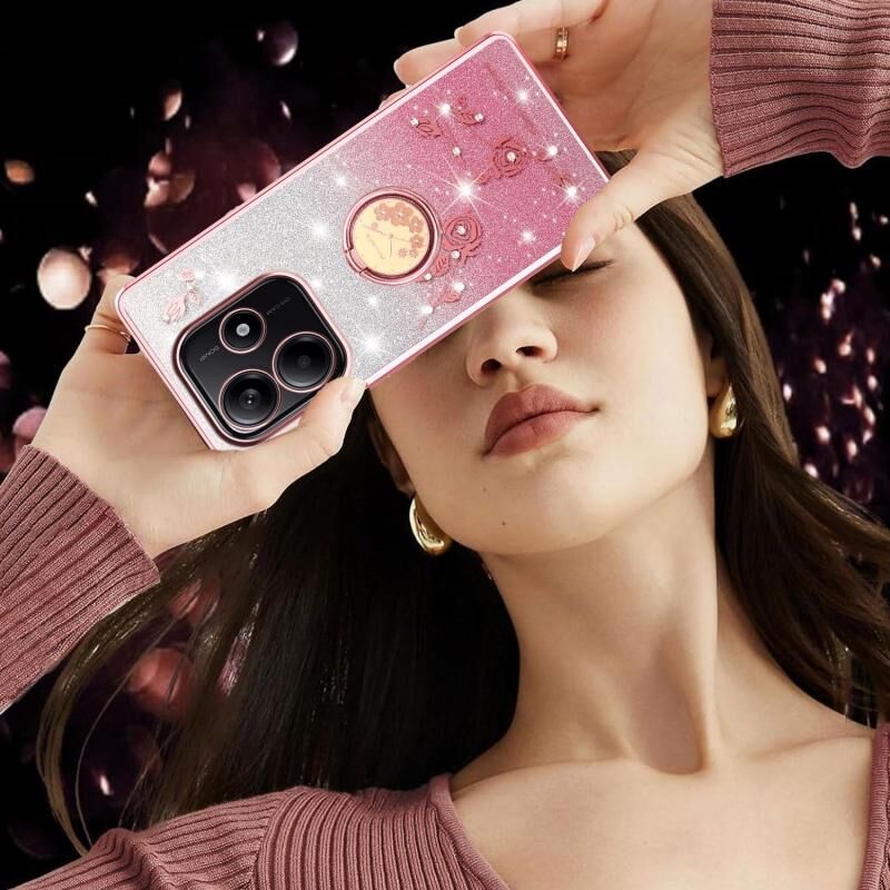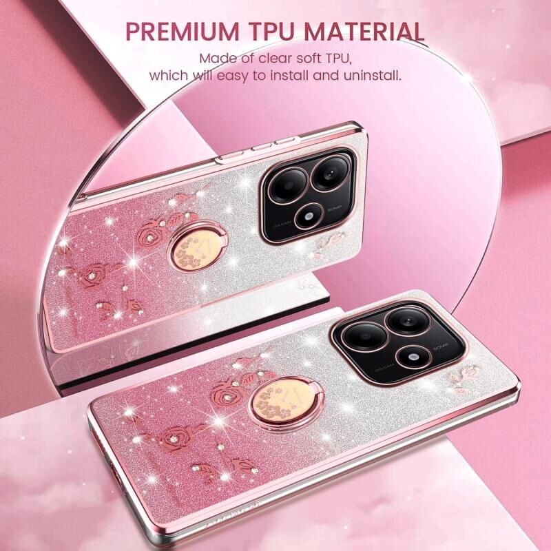 Για Xiaomi Redmi Σημείωση 14 5G Gradient Glitter Immortal Flower Ring All-inclusive τηλέφωνο υπόθεση (ροζ)