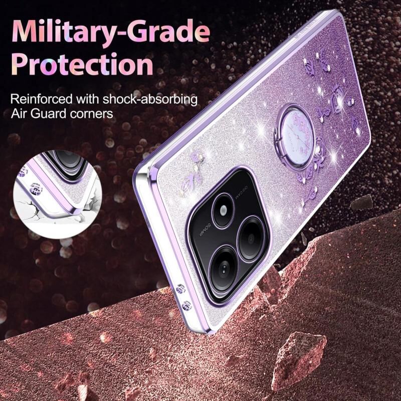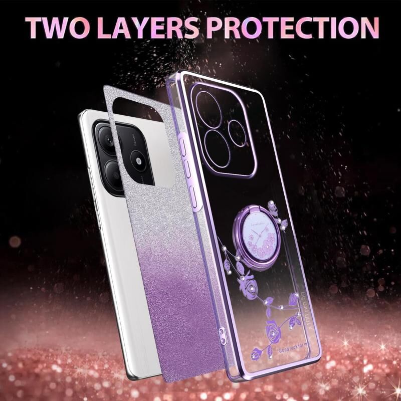 Για Xiaomi Redmi Σημείωση 14 5G Gradient Glitter Immortal Flower Ring All-inclusive τηλέφωνο υπόθεση (μωβ)