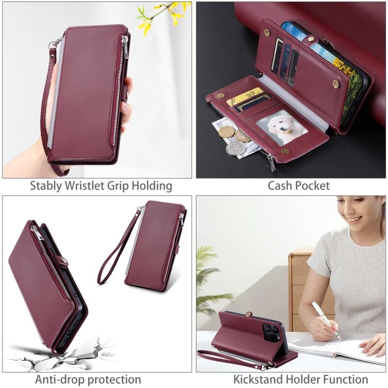 Για Xiaomi Redmi Σημείωση 14 5G Δερμάτινη ραφή Multi-card Slot φερμουάρ υπόθεση τηλεφώνου (κόκκινο κρασί)