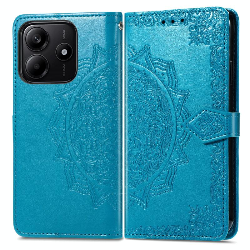 Θήκη τηλεφώνου δερμάτινη με ανάγλυφο σχέδιο μανταλάς για Xiaomi Redmi Note 14 5G (Μπλε)