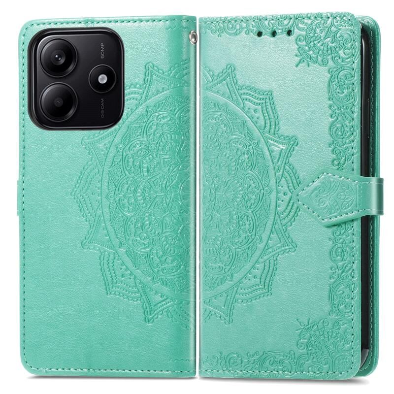 Θήκη τηλεφώνου δερμάτινη με ανάγλυφο σχέδιο μανταλάς για Xiaomi Redmi Note 14 5G (Γκρι)
