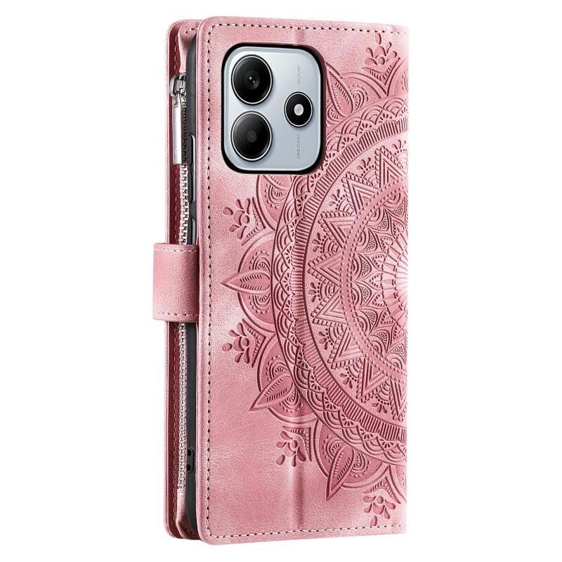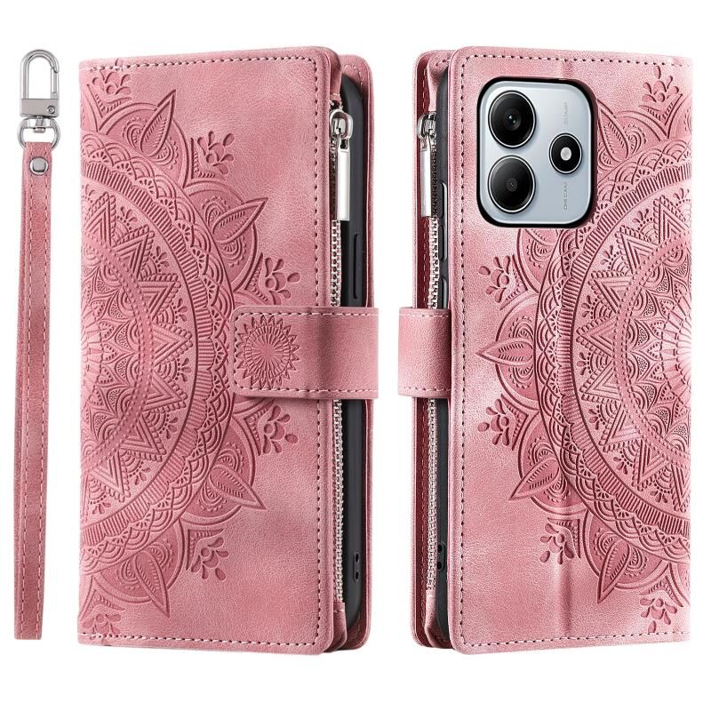 For Xiaomi Redmi Note 14 5G Multi-Card Totem Zipper Leather Phone Case(Pink)