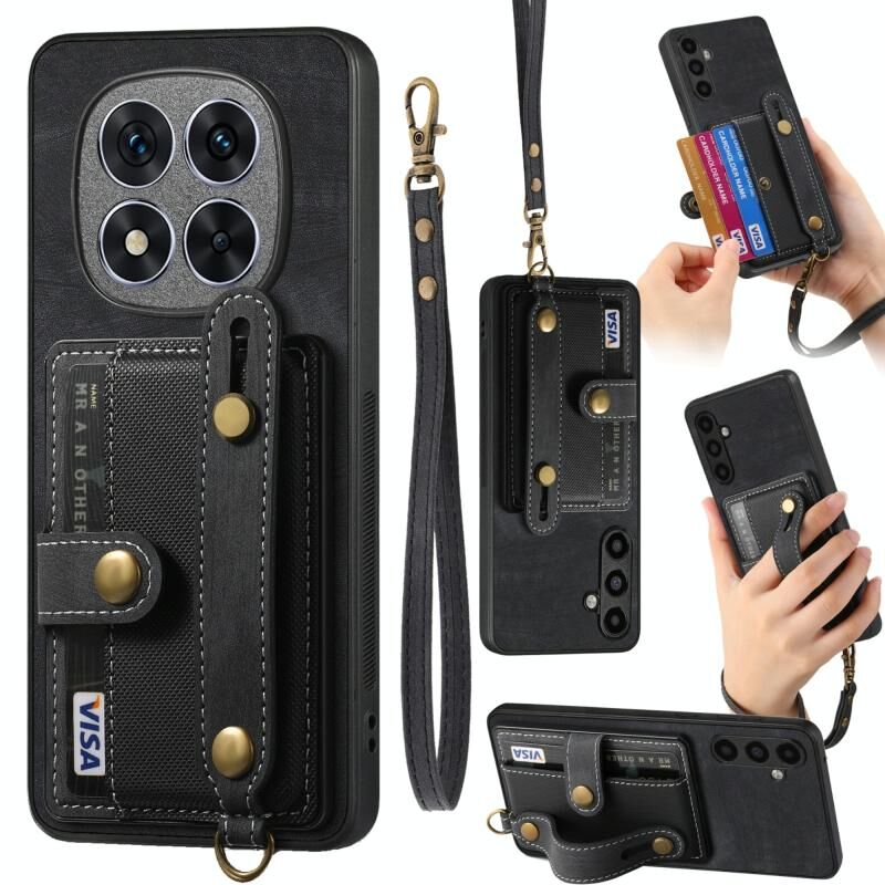 Για Xiaomi Redmi Note 14 5G Ρετρό Cross Wristband πορτοφόλι δέρμα πίσω τηλέφωνο υπόθεση (μαύρο)