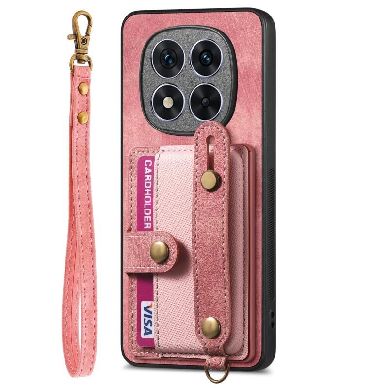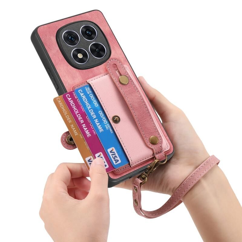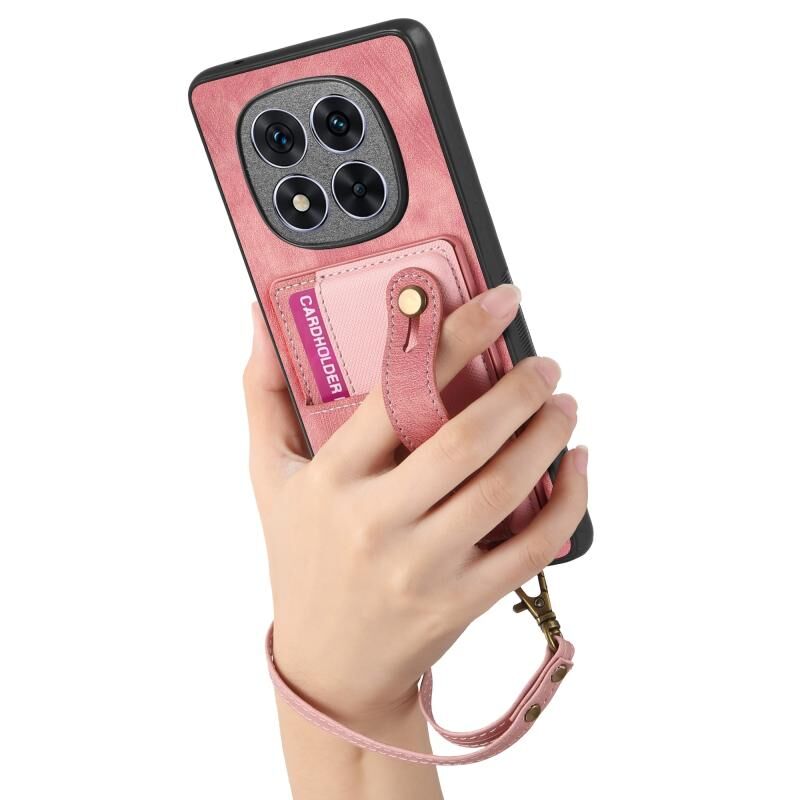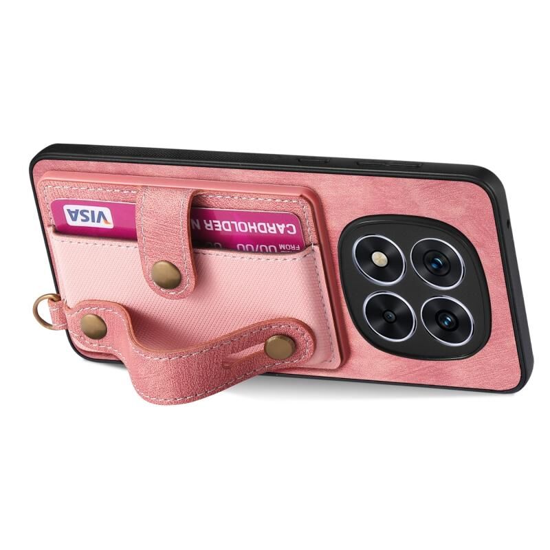Για Xiaomi Redmi Note 14 5G Ρετρό Σταυρός Wristband πορτοφόλι δέρμα πίσω υπόθεση τηλεφώνου (ροζ)