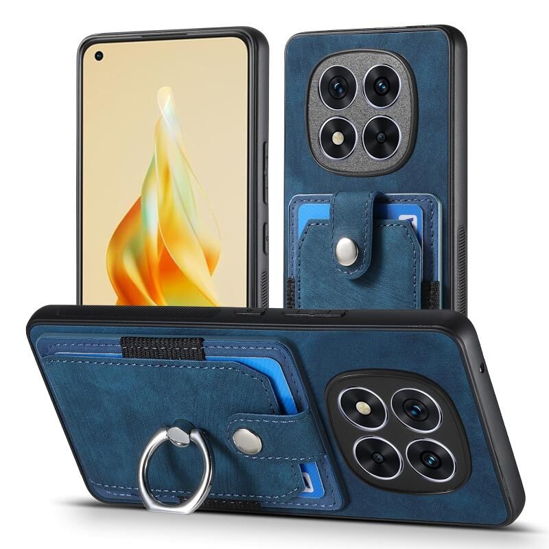 Για Xiaomi Redmi Σημείωση 14 5G Ρετρό δέρμα-συναίσθημα δαχτυλίδι κάρτα πορτοφόλι υπόθεση τηλεφώνου (μπλε)