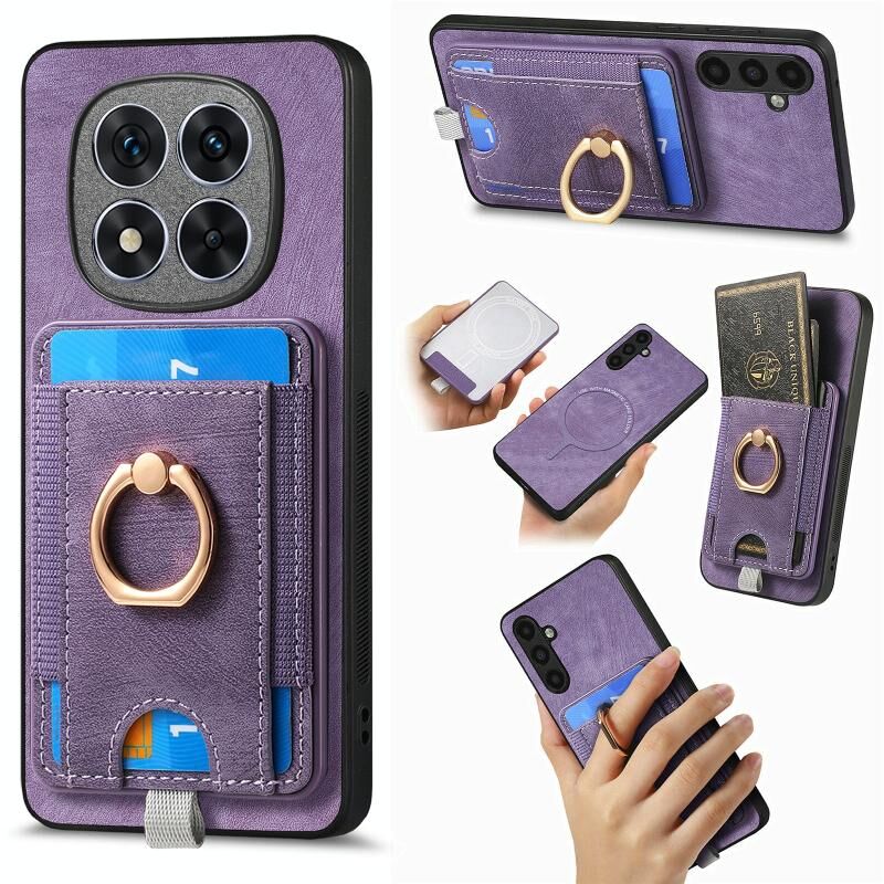 Για Xiaomi Redmi Σημείωση 14 5G Retro Splitable μαγνητική κάρτα τσάντα τσάντα δέρμα τηλέφωνο υπόθεση (μωβ)