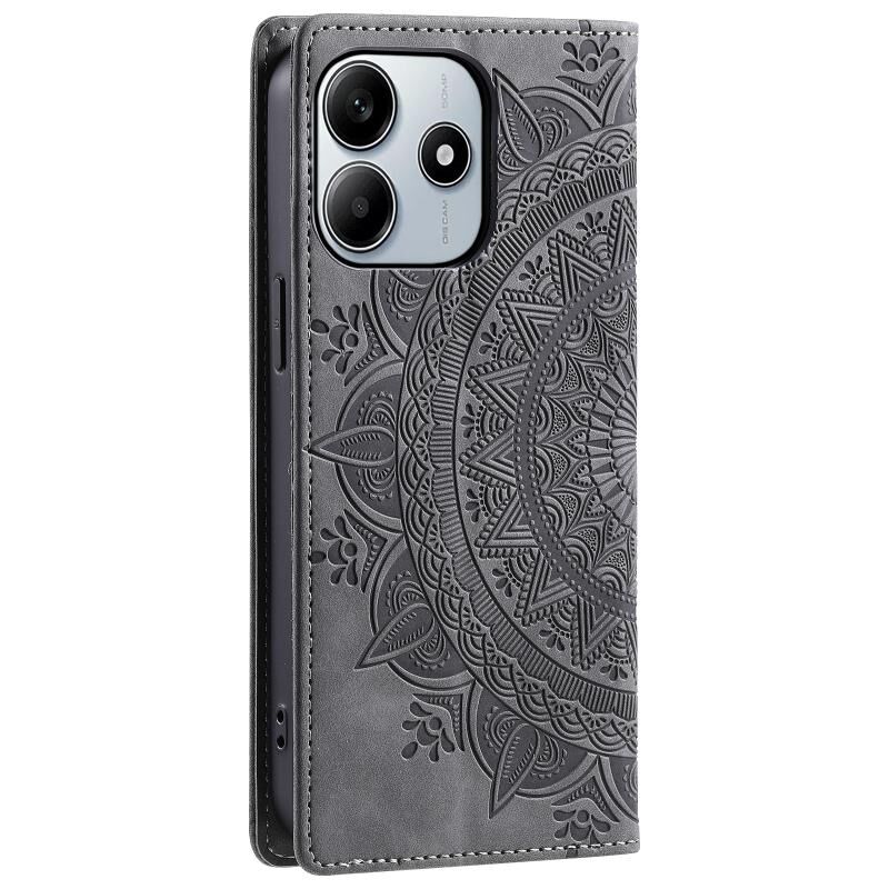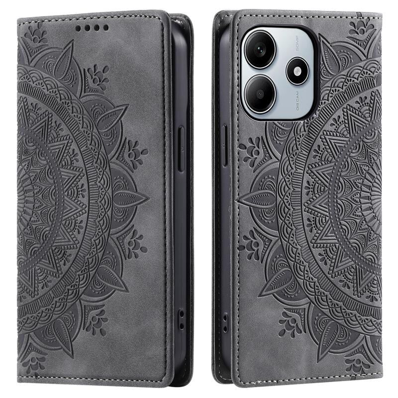 Για Xiaomi Redmi Note 14 5G Totem ανάγλυφη μαγνητική δερμάτινη θήκη τηλεφώνου (γκρι)