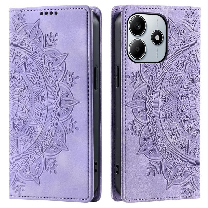 Για Xiaomi Redmi Note 14 5G Totem ανάγλυφη μαγνητική δερμάτινη θήκη τηλεφώνου (μωβ)