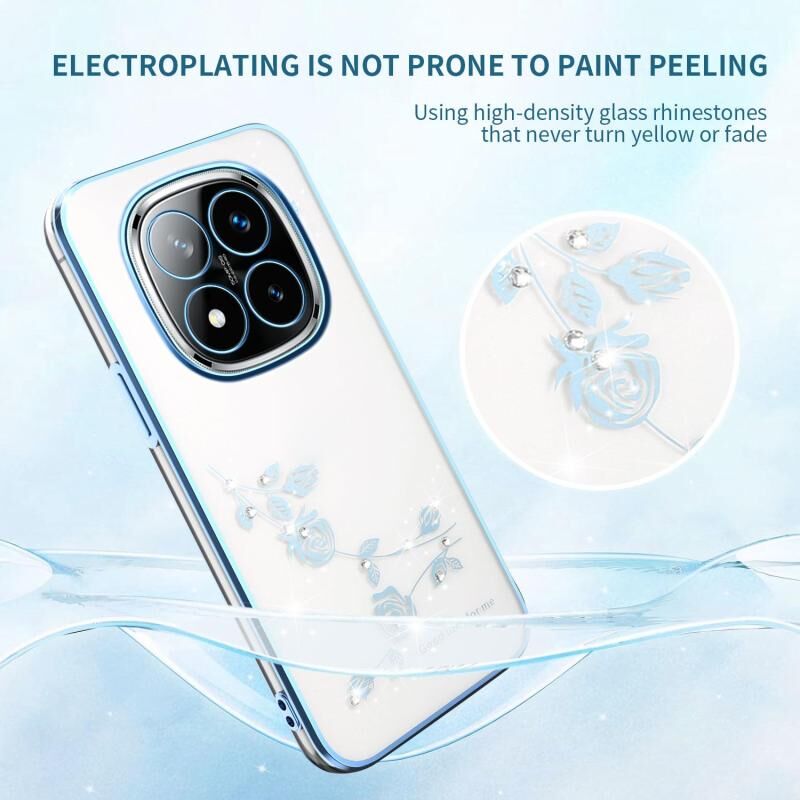 For Xiaomi Redmi Note 14 Pro+ 5G Bling Diamond Flower All-inclusive Phone Case(Blue)